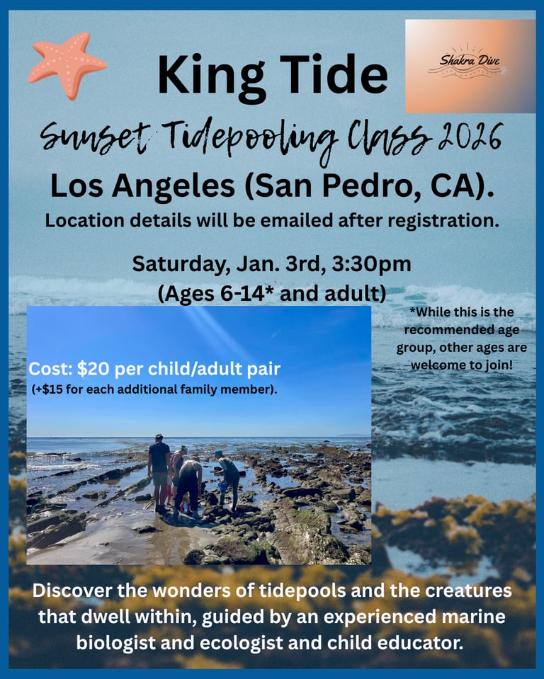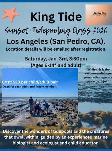 Ready to explore the wonders of the beach and tidepools with your little ones? Join us for exciting classes designed for both parents and kids! Whether you once dreamed of being a marine biologist or want to spark your child's curiosity about the ocean, we’re here to make it happen. From toddler classes to king tide tidepooling adventures, we’ve got something for everyone! Check out our upcoming dates and sign up today – space is limited.